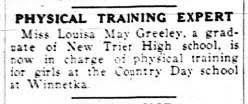 And sure enough, she is in the 1925 yearbook for the North Shore Country Day School as "L. M. Greeley, Coach" for Girls Field Hockey and Girls Basketball.